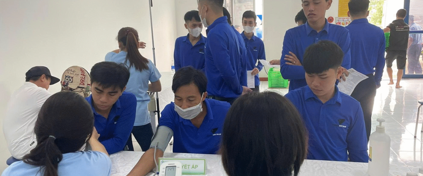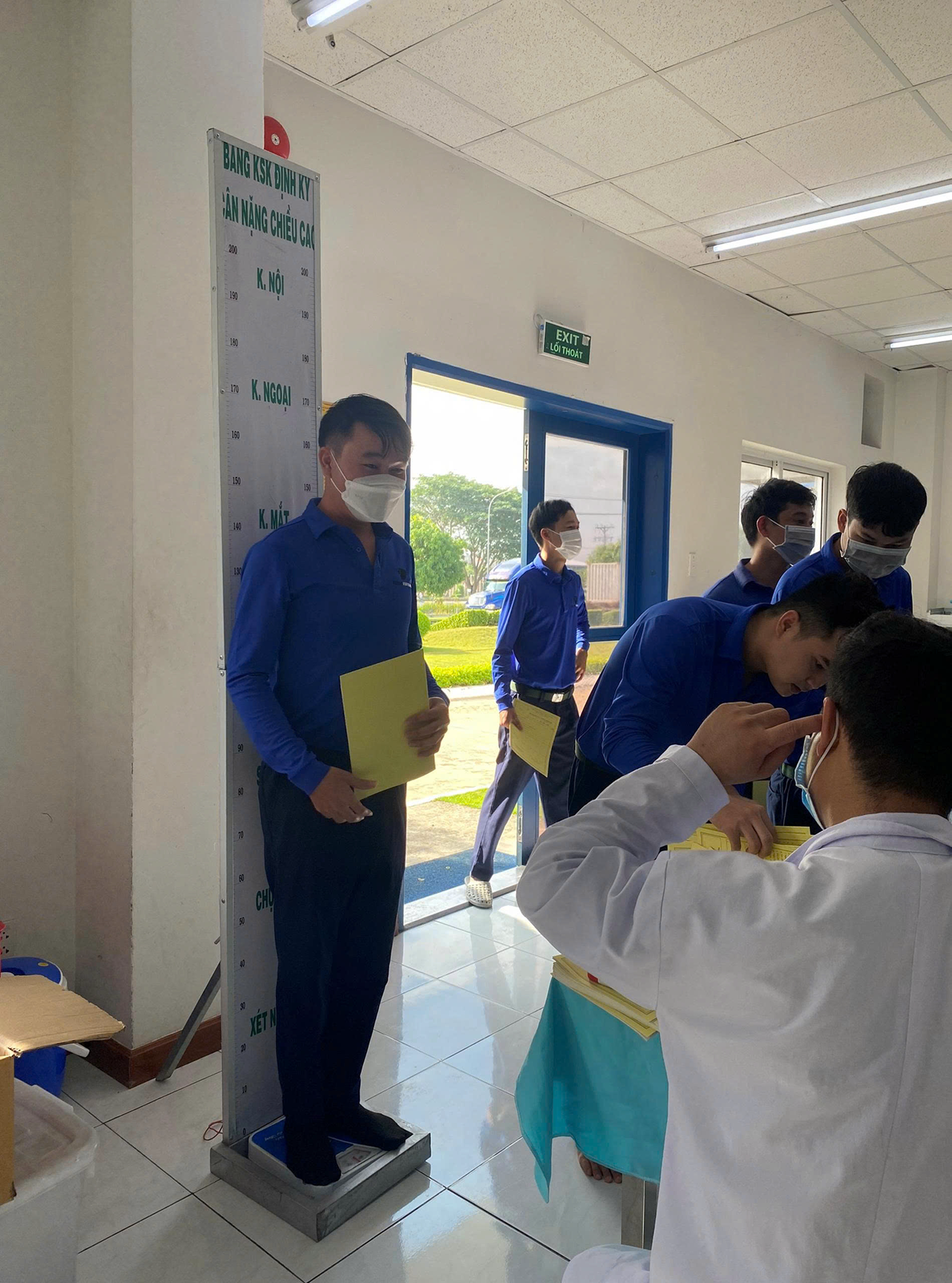 All employees gather in the health check-up area, where doctors conduct examinations and perform general health checks for each individual.